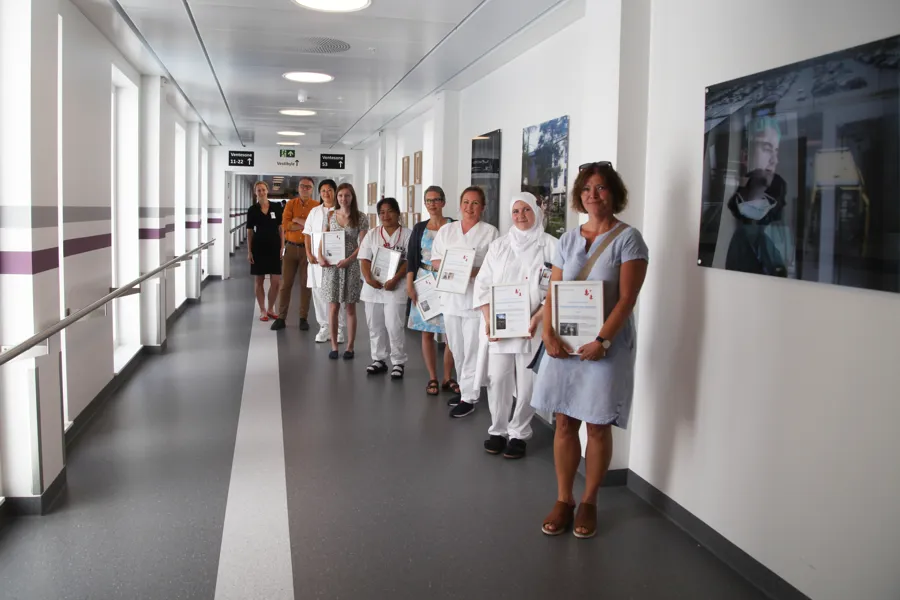 Allerede før administrerende direktør Hege Gjessing kunne erklære utstillingen for åpnet fredag formiddag, strømmet positive tilbakemeldinger på fra forbipasserende medarbeidere, besøkende og pasienter som satt pris på fotografier på veggene.